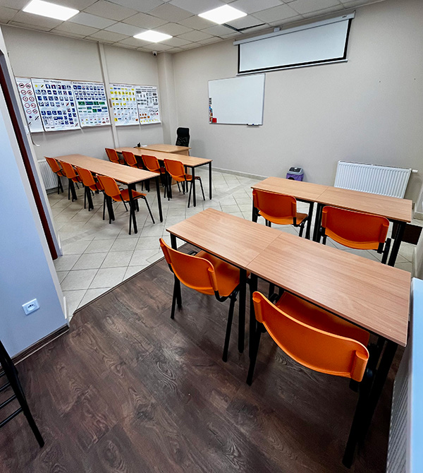 Szkoła dysponuje przestronną, klimatyzowaną salą wykładową wyposażoną w sprzęt multimedialny oraz wszelkie materiały dydaktyczne i pomocnicze niezbędne do efektywnej nauki.